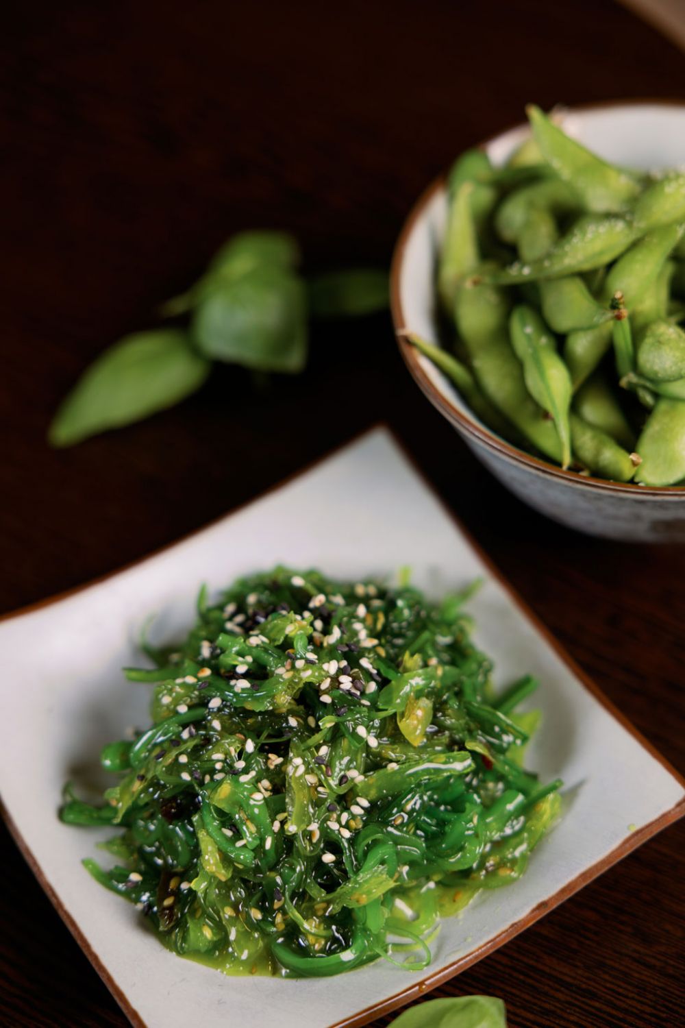 Lachs, Tofu, Seetang & Lauchzwiebel
