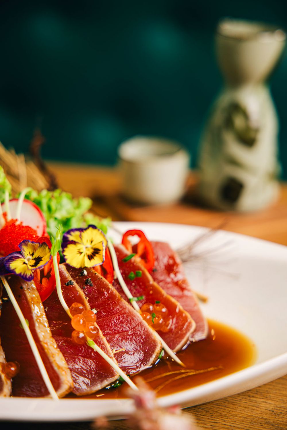Hauchdünne Scheiben Thunfisch mit Ponzu Soße